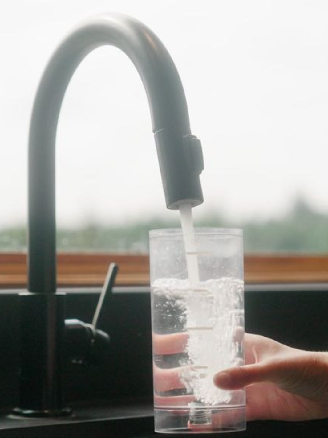 Filling the water tank is now child's play. Simply place the removable tank over the sink and fill it with 150 to 600 ml of water. For greater accuracy, weigh the tank on a scale and fill it to the desired volume.